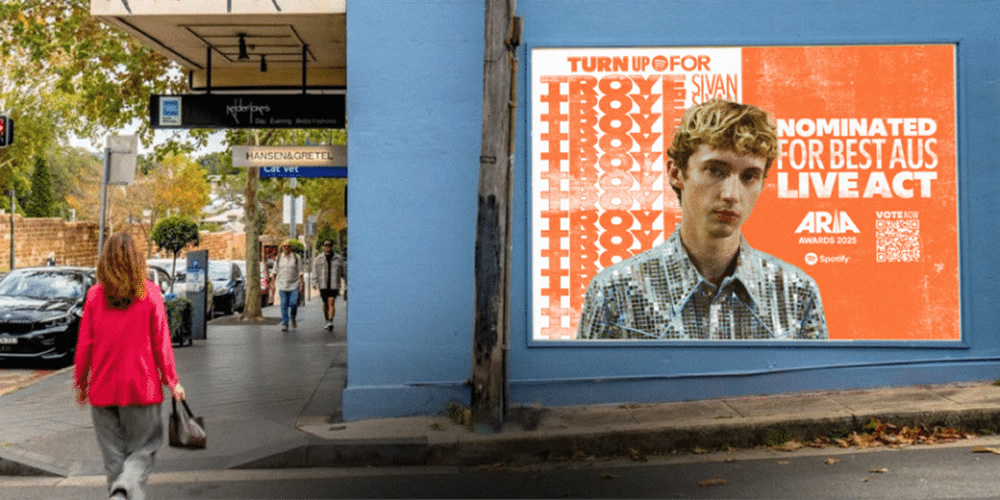 Spotify is rolling out a global out-of-home push for the ARIA Awards 2025, teaming up to spotlight Australian music stars across nominations while nudging fans to vote directly inside the Spotify app. The aim is simple: celebrate local talent and supercharge engagement—while underscoring Spotify’s deep roots in Australia’s music culture. The campaign spans more than 800 placements across Australia and key international markets like the US and UK, with vivid billboards of nominated artists like Troye Sivan, Ball Park Music, Speed, Confidence Man, and Kylie Minogue—many featuring QR codes that jump straight to voting pages. After the November 19 ceremony, winners will take over icons like New York’s Times Square and London’s Leicester Square.